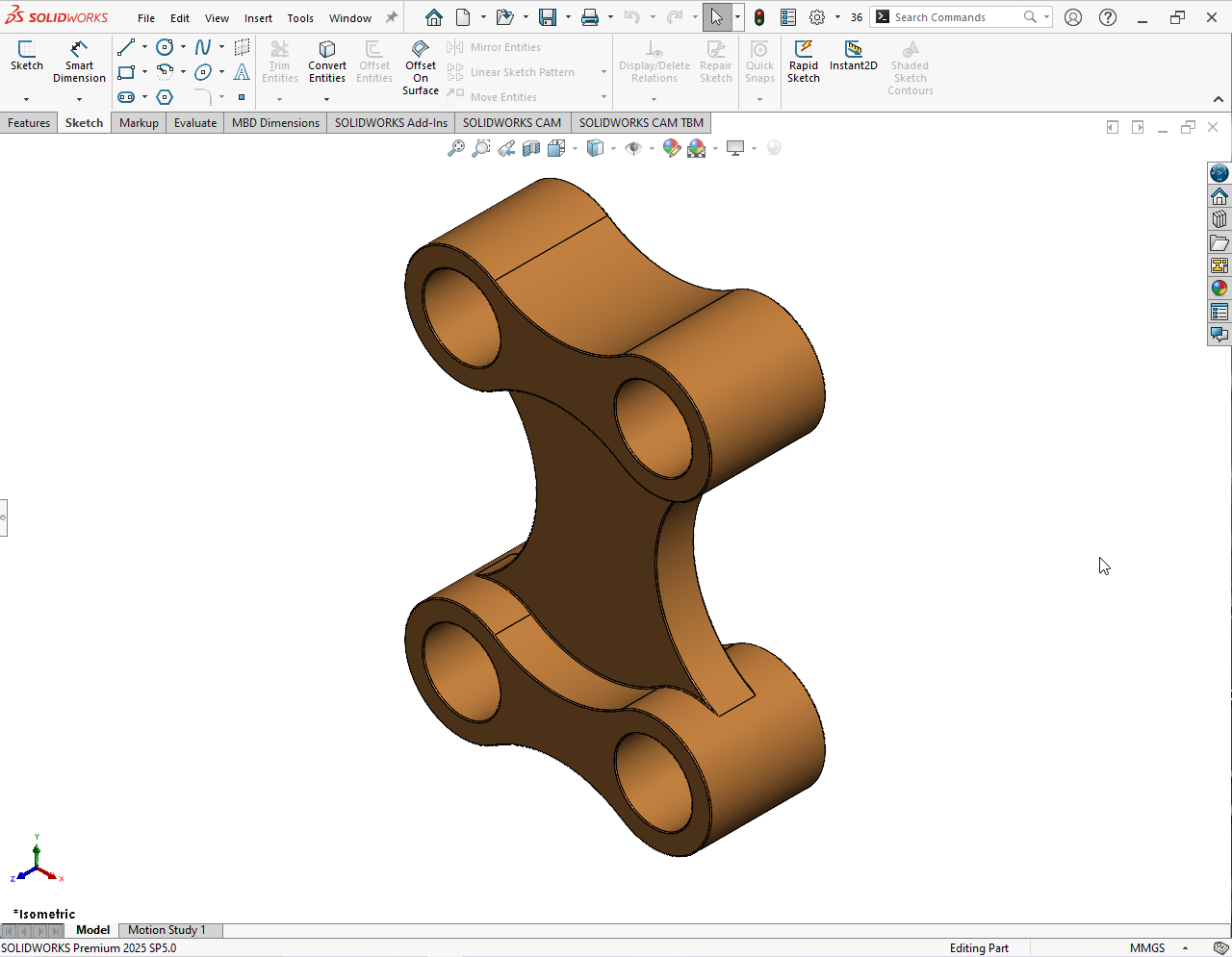 Created a 3D link bracket model in SolidWorks to demonstrate mechanical design principles, part modeling techniques, and proper use of features and constraints.