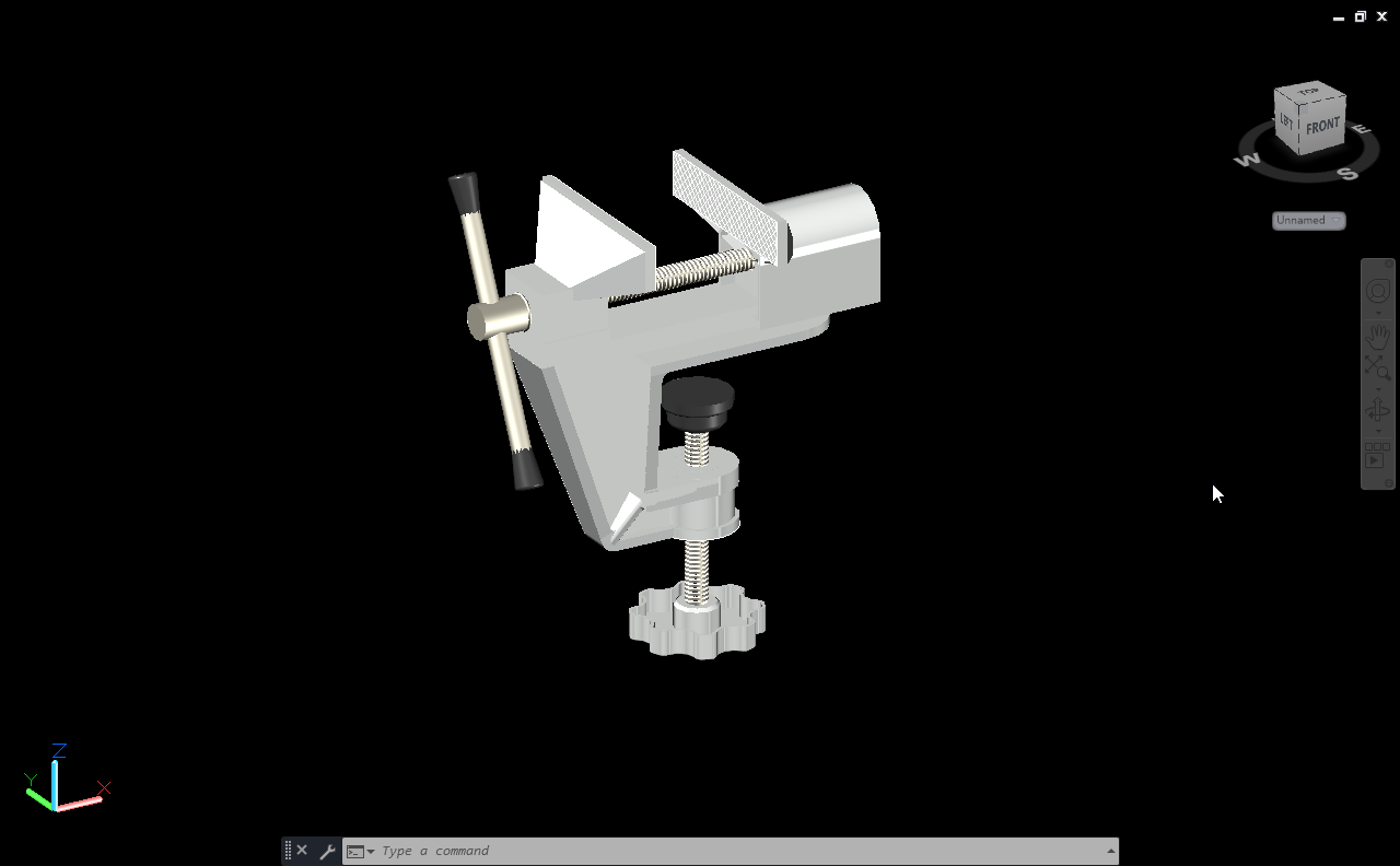 I created each component separately including the base, fixed jaw, movable jaw, screw, and handle, and then combined them to form the full assembly.